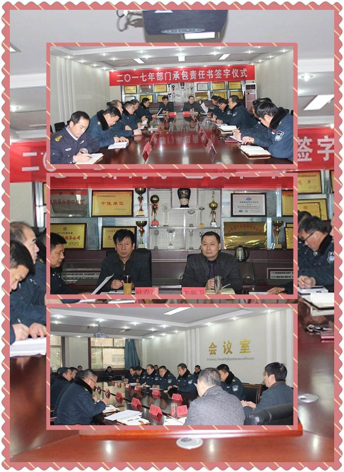 會(huì)議進(jìn)行三項(xiàng)內(nèi)容,一簽訂目標(biāo)責(zé)任書(shū)。大隊(duì)與各中隊(duì)分別簽訂2017年目標(biāo)責(zé)任書(shū),通過(guò)簽訂目標(biāo)責(zé)任書(shū)強(qiáng)化中隊(duì)的責(zé)任、明確目標(biāo)方向,提升了人員的積極性,實(shí)現(xiàn)年工作任務(wù)打下基礎(chǔ)。二實(shí)行獎(jiǎng)懲機(jī)制,加強(qiáng)隊(duì)伍建設(shè),促進(jìn)業(yè)務(wù)發(fā)展。根據(jù)今年完成目標(biāo)任務(wù)情況,大隊(duì)采取獎(jiǎng)懲辦法,對(duì)任務(wù)目標(biāo)完成好的中隊(duì)長(zhǎng)及班長(zhǎng)進(jìn)行升職加薪,有力的提高了大家的工作積極性,為今后的業(yè)務(wù)拓展奠定了堅(jiān)實(shí)的基礎(chǔ)。三大隊(duì)全年工作的總結(jié)。總結(jié)會(huì)上,王經(jīng)理充分肯定了2016年二大隊(duì)的工作成績(jī)。他指出二大隊(duì)全年圍繞保安市場(chǎng),堅(jiān)持主業(yè)為主、多種經(jīng)營(yíng)方式并存的發(fā)展模式,不斷拓寬保安市場(chǎng),取得了可喜可賀的成績(jī)。在隊(duì)伍建設(shè)上,規(guī)范機(jī)構(gòu)設(shè)置,分工明確,各負(fù)其責(zé)。另外不斷加強(qiáng)隊(duì)員崗前培訓(xùn),崗中教育指導(dǎo),著實(shí)提升了隊(duì)伍的“外在形象、內(nèi)在素質(zhì)”。同時(shí)也著重分析了存在的問(wèn)題和不足。他說(shuō)2017年我們要圍繞主業(yè),進(jìn)一步放大優(yōu)勢(shì),再接再厲,率先發(fā)展,抓好隊(duì)伍、帶好班子,適應(yīng)新形勢(shì),保持清醒頭腦,克服慣性思維,增強(qiáng)創(chuàng)新,優(yōu)化主業(yè),強(qiáng)化他業(yè),推動(dòng)業(yè)務(wù)、隊(duì)伍提檔升級(jí),實(shí)現(xiàn)雙贏的局面。