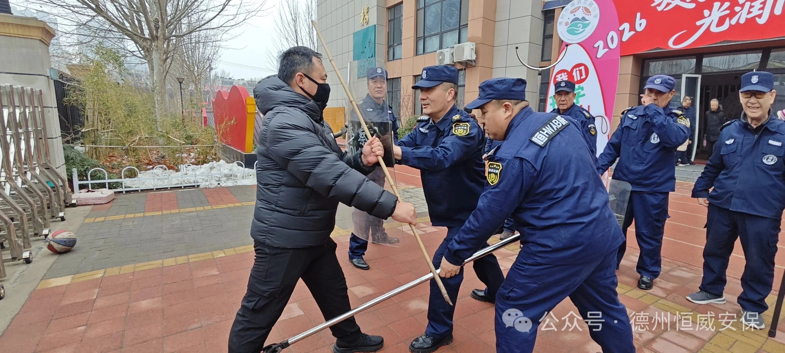 組織校園保安員開展常態化防暴演練。通過模擬校園常見暴力襲擊場景,不斷優化應急響應流程、防暴器械規范使用及協同處置技巧,切實增強校園保安員的安全防范意識與風險預判能力,全面提高面對突發事件時的快速反應與高效處置能力。