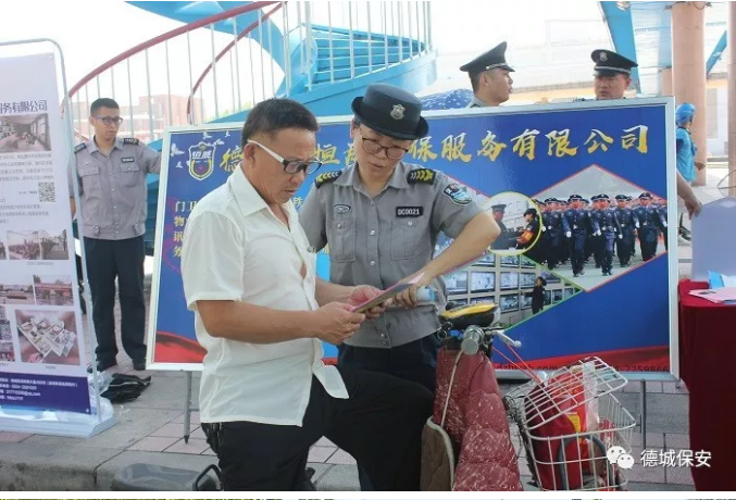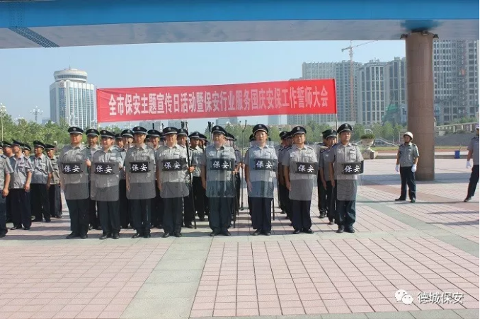 本次活動分為:展板宣傳、發放宣傳資料、向市民講解活動目的及保安行業發展等;其次全體保安員在廣場進行宣誓儀式;烈日炎炎下,保安員神情凝重,緊握拳頭,對來接受宣誓的領導莊重宣誓。宣誓中,每位保安員對自己肩負的神圣職責和光榮使命作出鄭重的承諾和讓,樹立起我是保安員我光榮,我是保安員我驕傲的思想。并時刻牢記我們是衛士,要用一顆赤誠的心維護駐點單位的安全和健康。第三通過各種媒體如微信公眾平臺、微信群、網絡、報刊等進行宣傳,向社會各界展現保安行業發展成就、保安員突出事跡、開展安全知識普及教育等亮點工程。