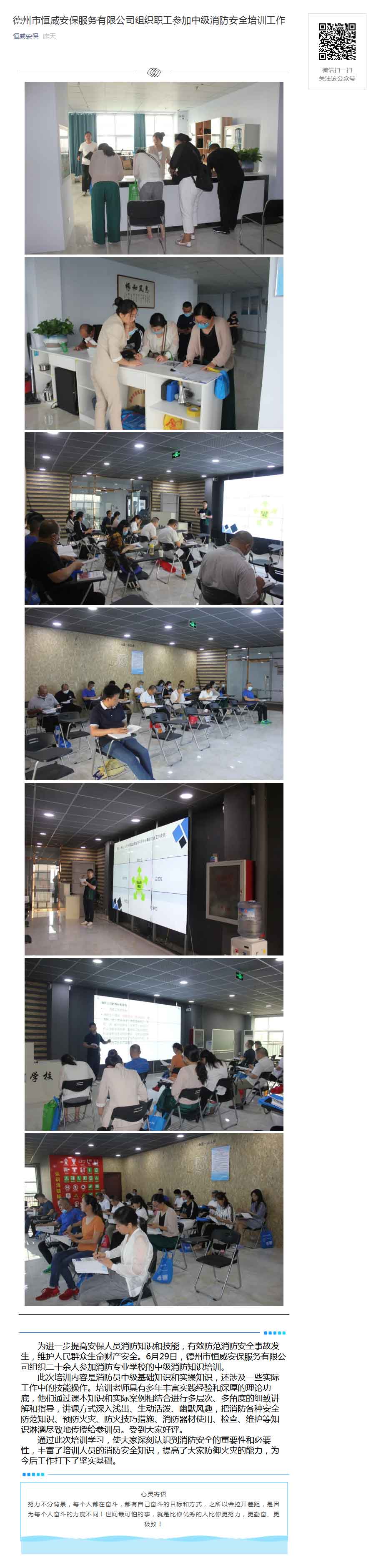 德州市恒威安保服務有限公司組織職工參加中級消防安全培訓工作